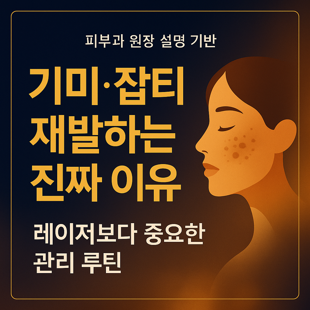 기미·잡티가 왜 계속 재발하는지 피부과 원장의 설명을 기반으로 근본 원인과 관리법을 정리했습니다. 레이저보다 중요한 자외선 차단·연고 루틴, 피부 타입별 잡티 발생 차이까지 한눈에 이해할 수 있는 실전 가이드. 기미 재발 방지와 잡티 관리가 고민이라면 꼭 읽어보세요.